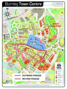 The parade route will make it’s way through the centre of Burnley, stopping at the half-way point to hold a short service and wreath laying at the Peace Gardens.